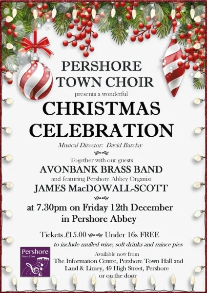 Join us on Friday 12th, December at Pershore Abbey along with our guests Avonbank Brass Band, plus Pershore Abbey organist James MacDowall-Scott, for our wonderful Christmas celebration.